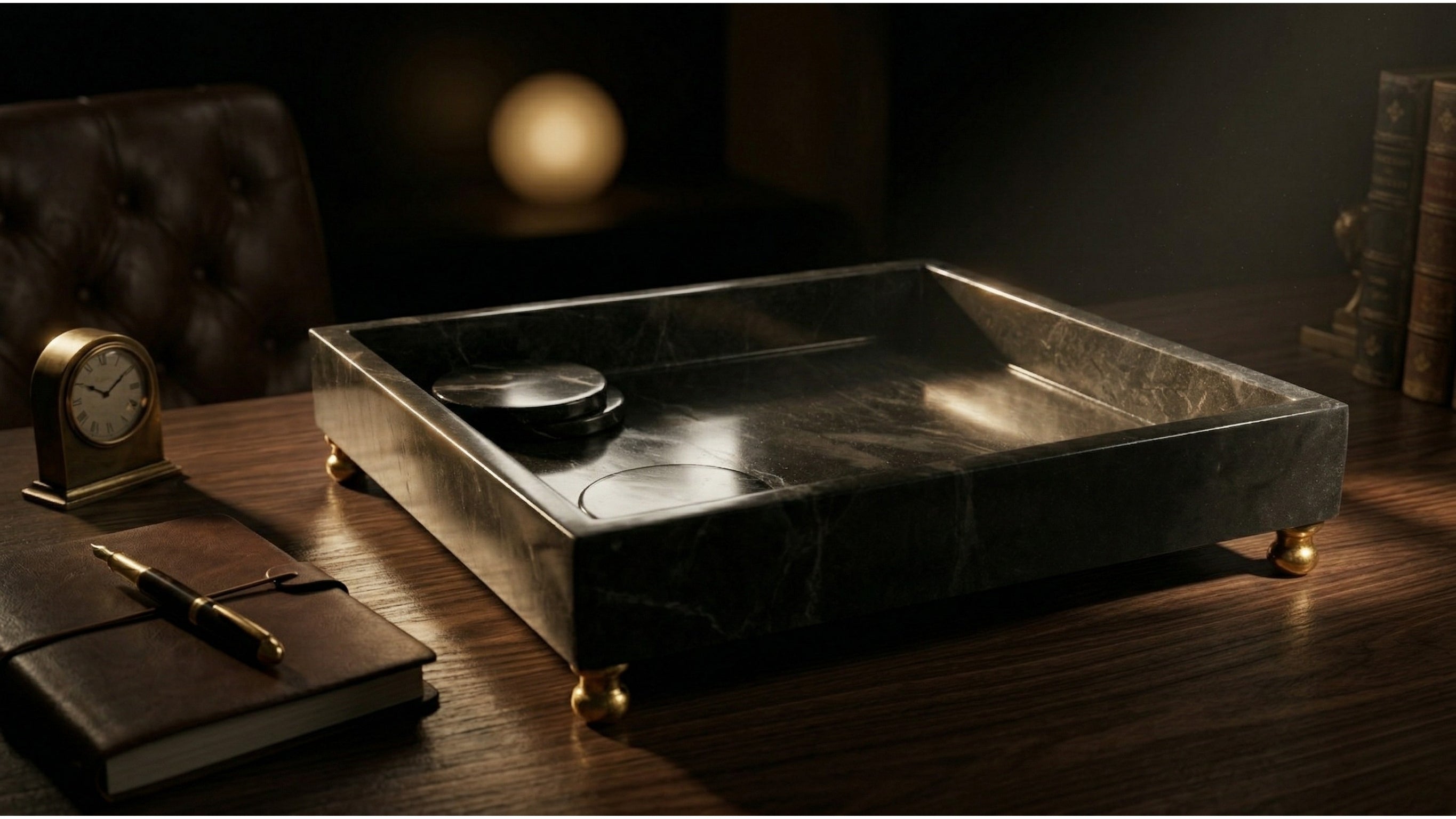 Noir Marble Footed Tray
